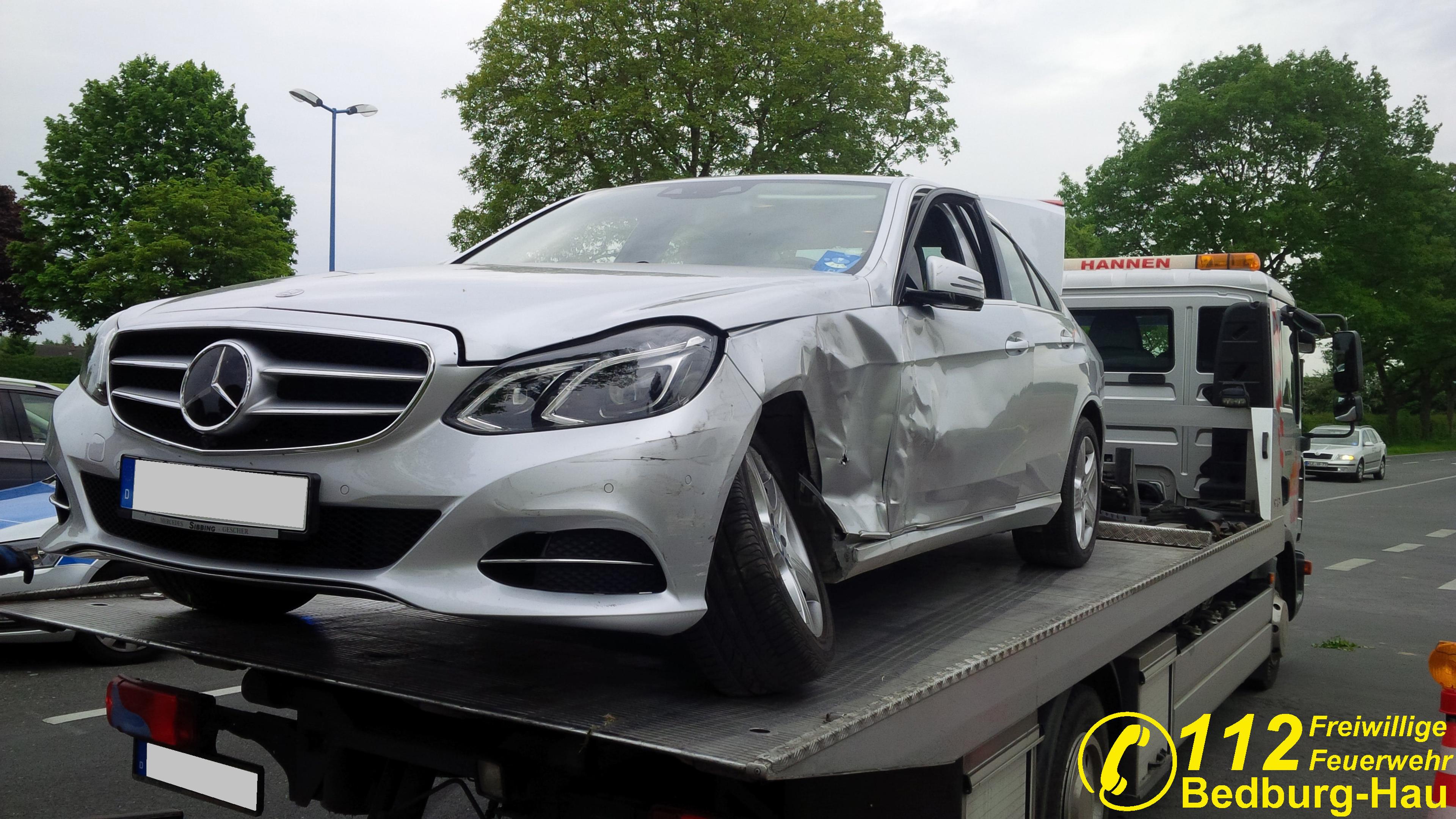 Vermutlich durch die Missachtung der Vorfahrt stießen im Kreuzungsbereich ein Ehepaar mit ihrem Mercedes aus dem Kreis Borken mit einem VW Transporter einer Jugendgruppe seitlich zusammen. Dabei wurde das Fahrzeug des Ehepaars aus Borken über die Kreuzung in den gegenüberliegenden Seitenstreifen geschleudert. Im VW Transporter befanden sich fünf Jugendliche mit Betreuern. Bei dem Aufprall verletzten sich das Ehepaar sowie ein Jugendlicher. Sie wurden vom Rettungsdienst versorgt und ins Krankenhaus transportiert. Der Fahrer des Mercedes musste von der Feuerwehr aus seinem Fahrzeug befreit werden.