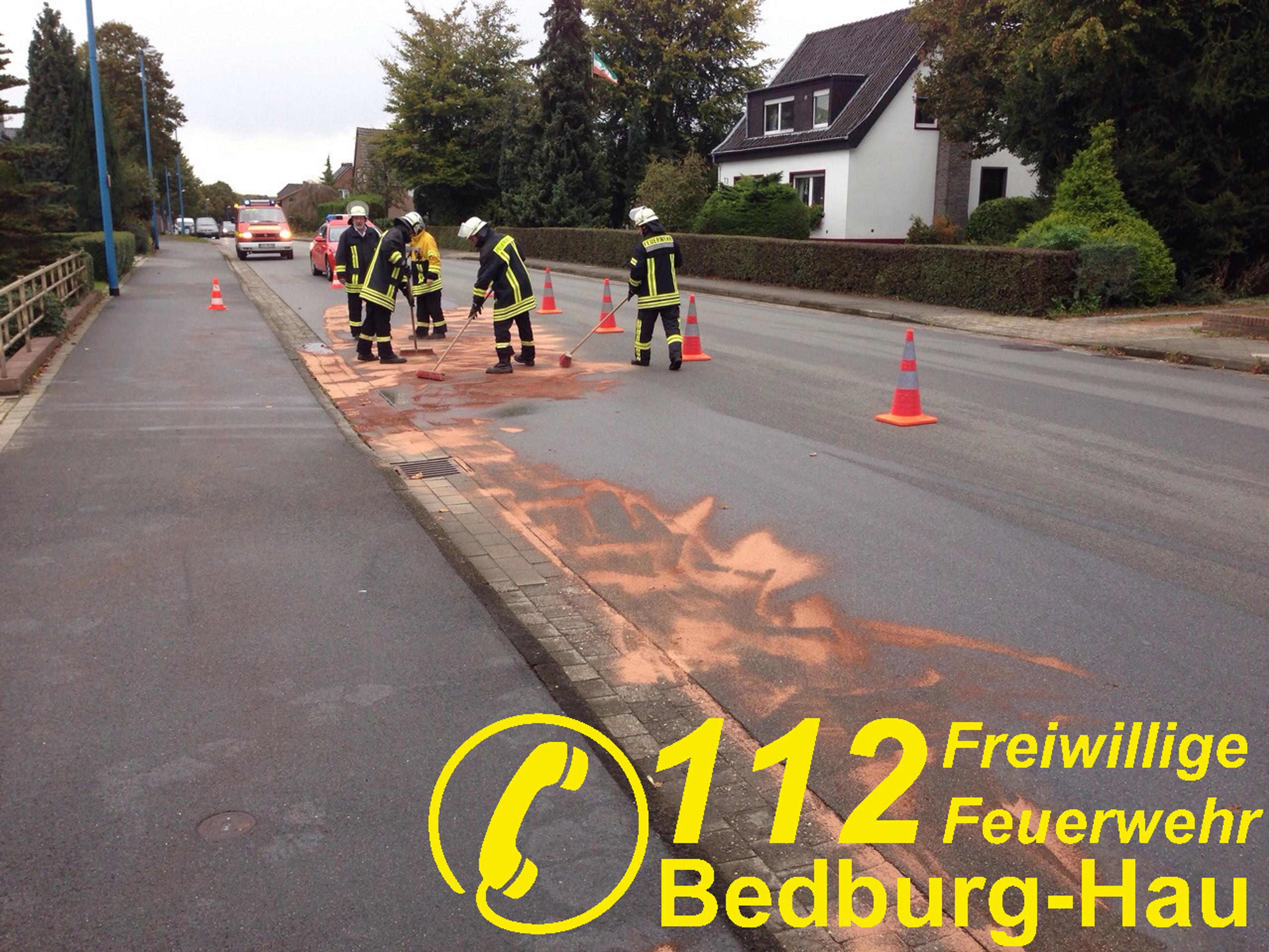 Etwa 5Liter Betriebsmittel waren ausgelaufen. Es wurde Ölbindemittel aufgebracht.
