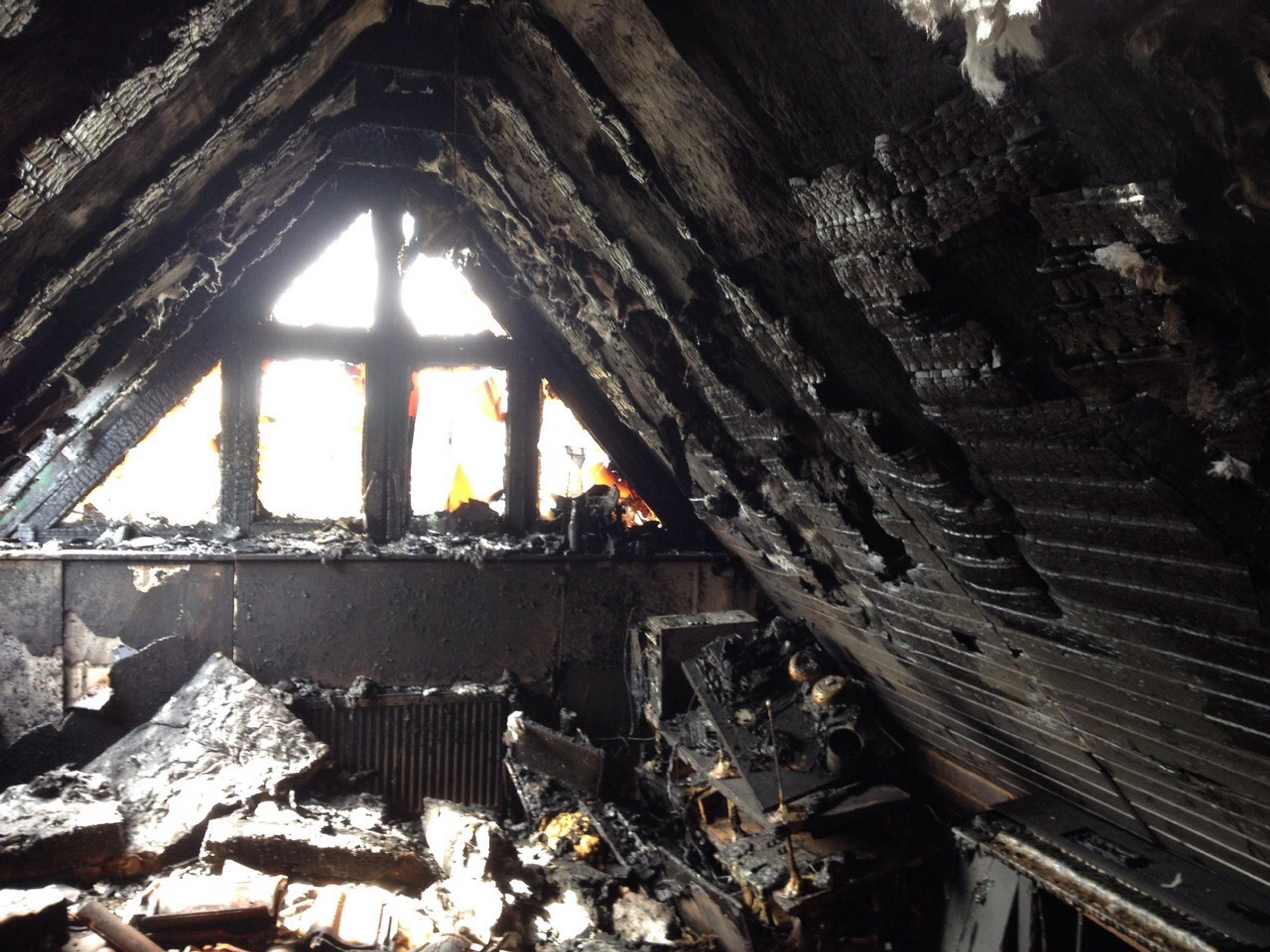 Zimmerbrand in einem ausgebauten Dachgeschoss.