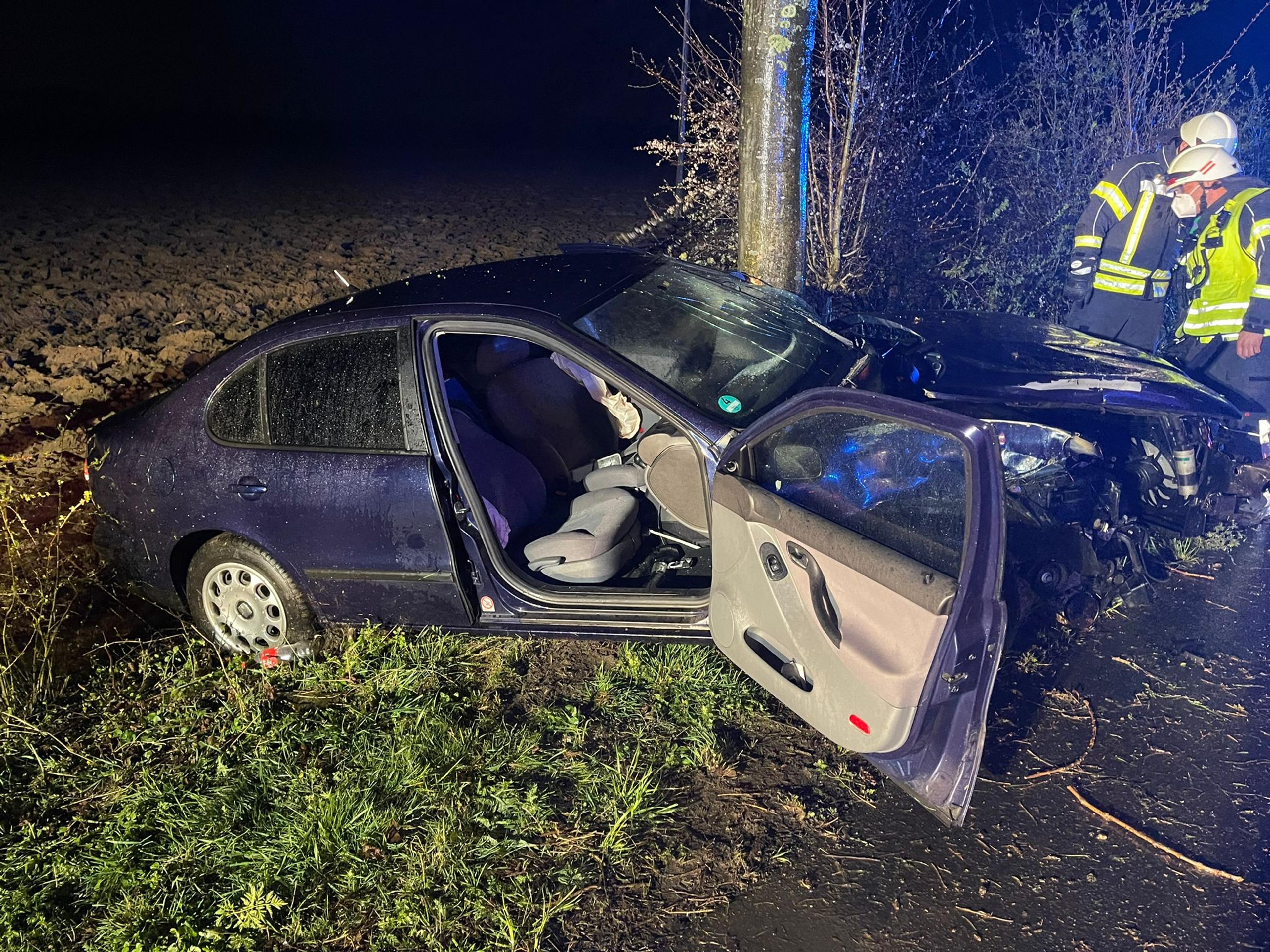 Gegen Baum geprallt: Fahrer muss aus Fahrzeug befreit werden.