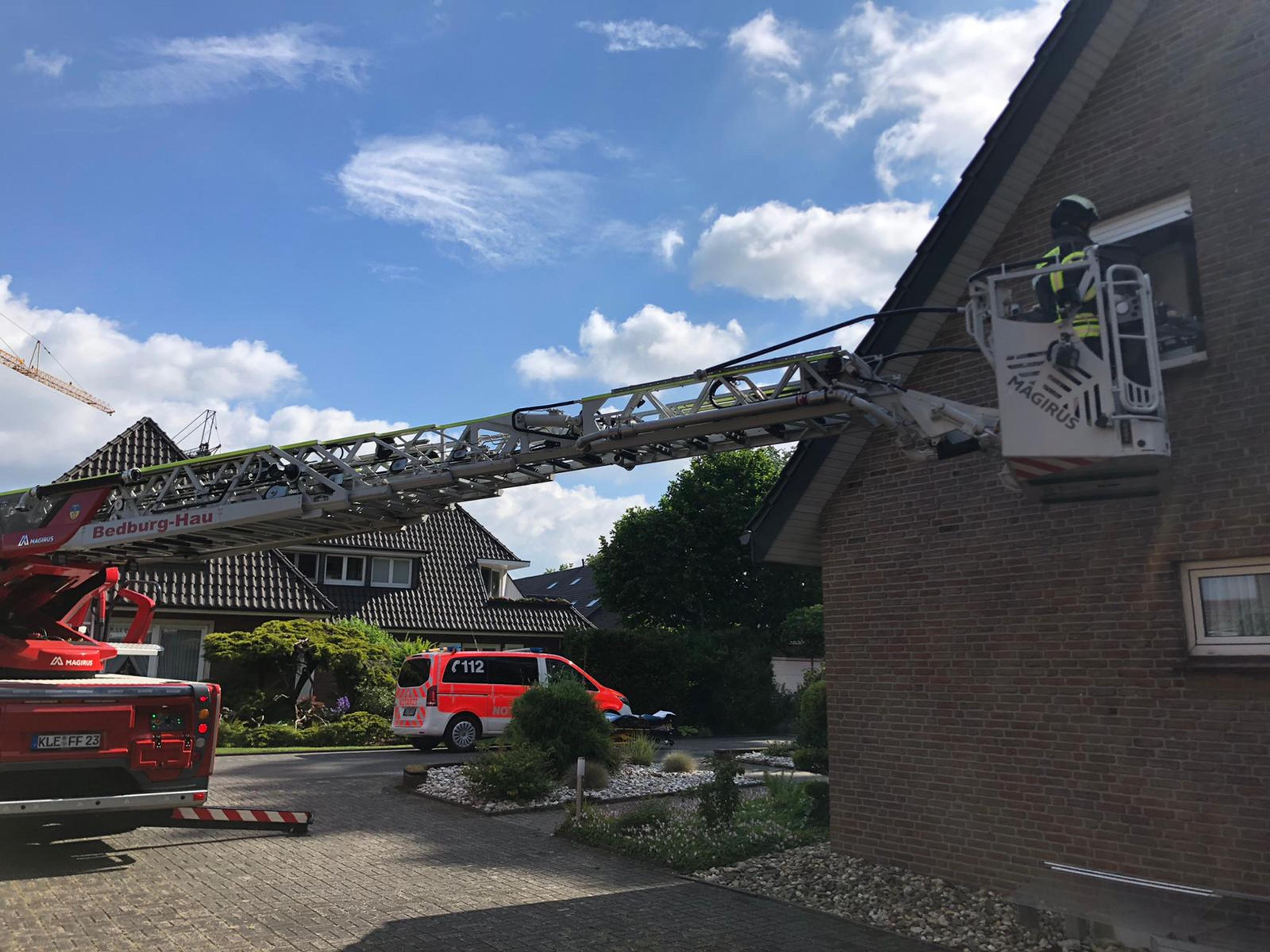 Patiententransport mit Drehleiter aus dem 1. Obergeschoss.